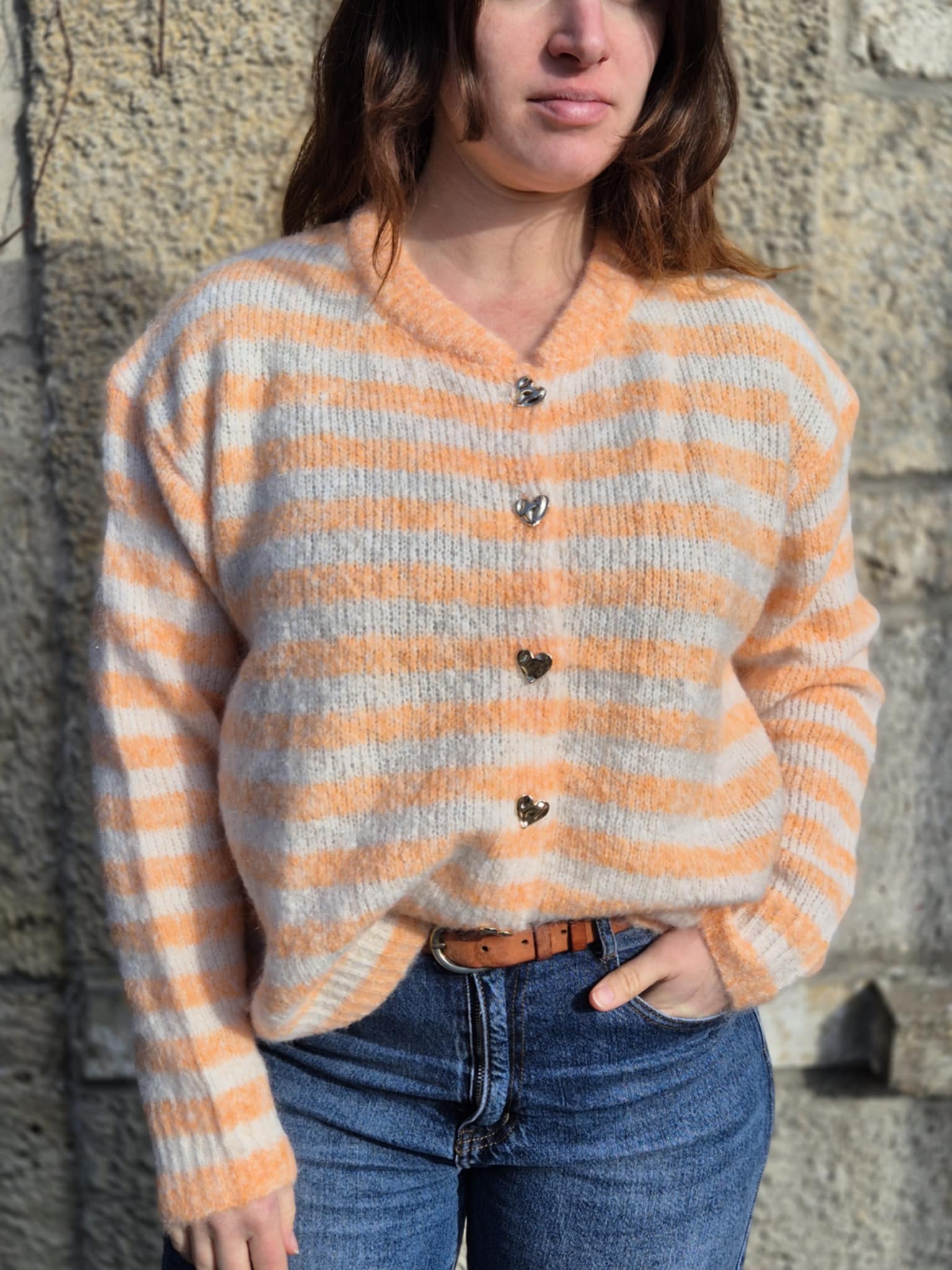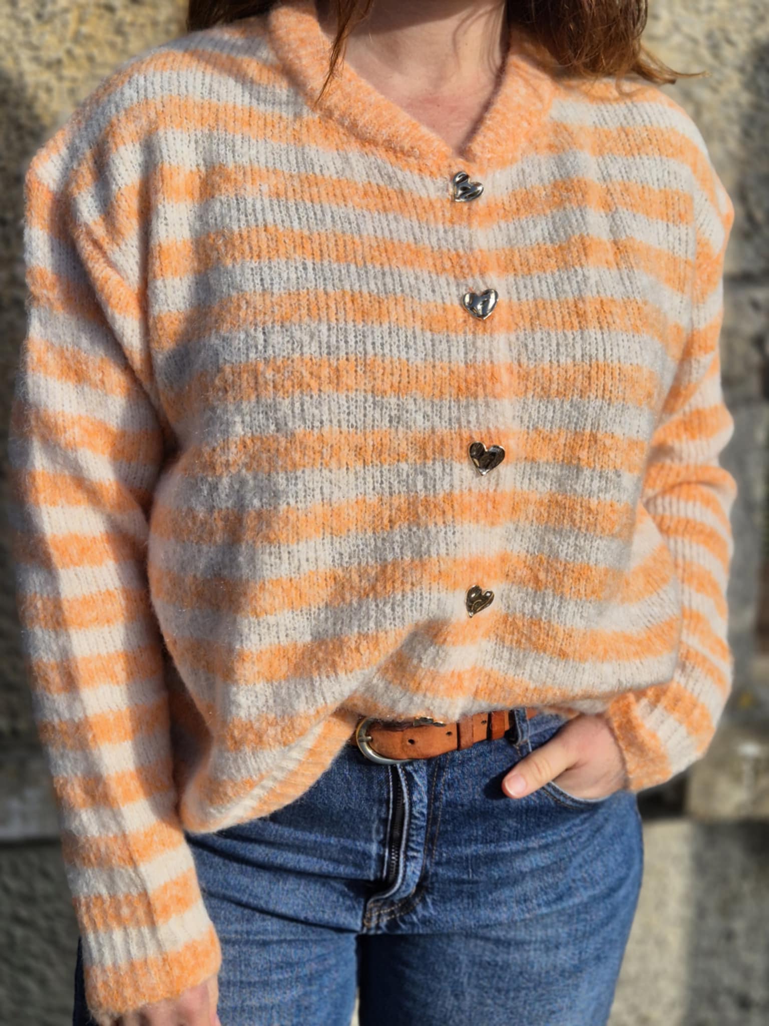 Gilet rayé « Lovie » orange et écru