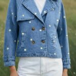Veste en denim bleu ornée de délicates fleurs blanches, au style à la fois frais et féminin. Sa coupe structurée avec double boutonnage apporte une touche élégante, tandis que le tissu en jean assure confort et durabilité.